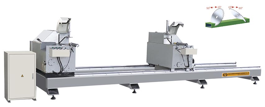 這些設(shè)備的用途分別是:雙角鋸用于PVC型材的定尺、定角度鋸切下料;V型鋸用于框挺的V型口鋸切;中梃鋸用于中梃料90端面定尺切割、玻璃壓條鋸用于各種玻璃壓條型材的定尺、定角度鋸切下料;無(wú)齒鋸用于增強(qiáng)型鋼的定尺下料。